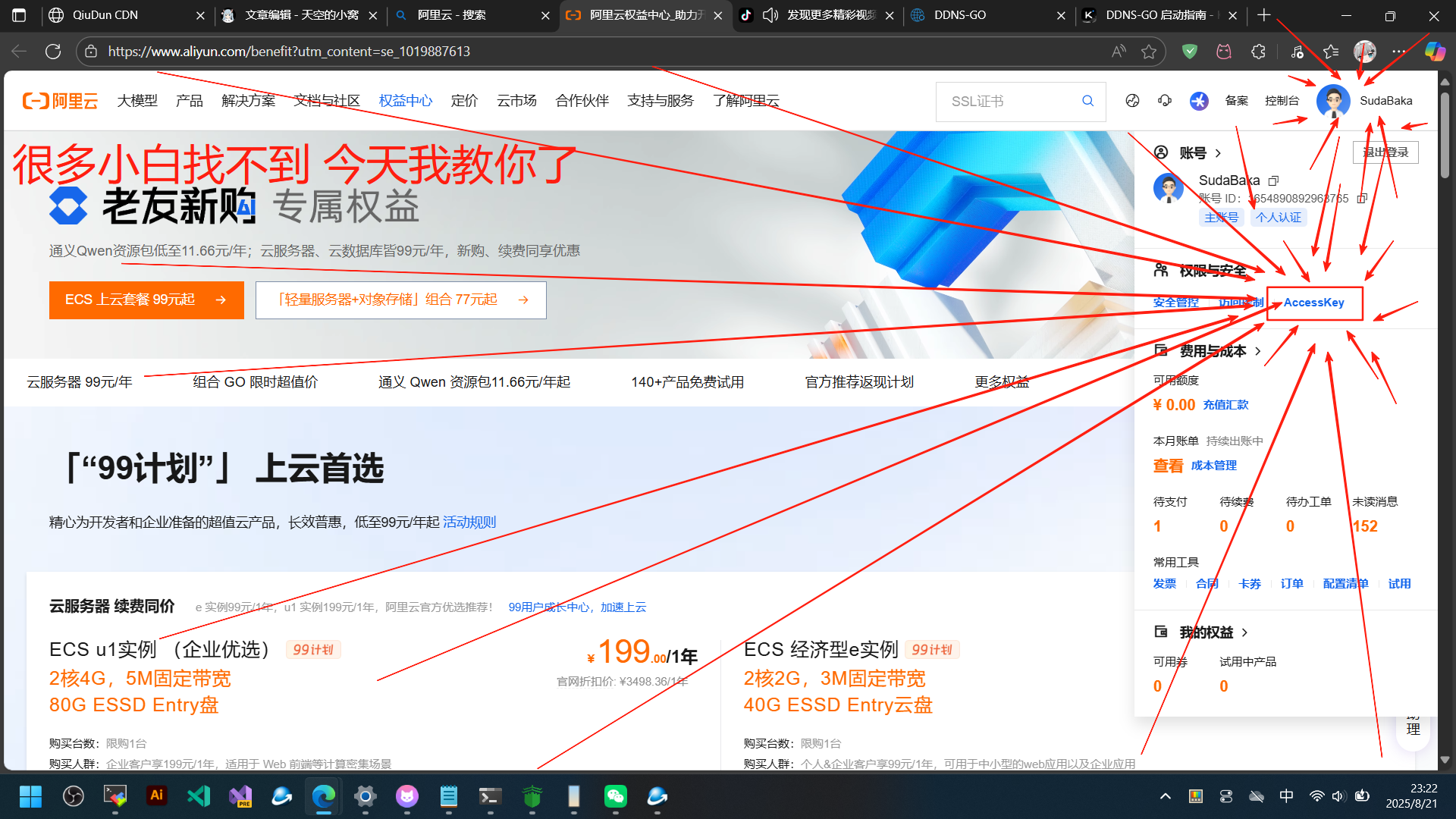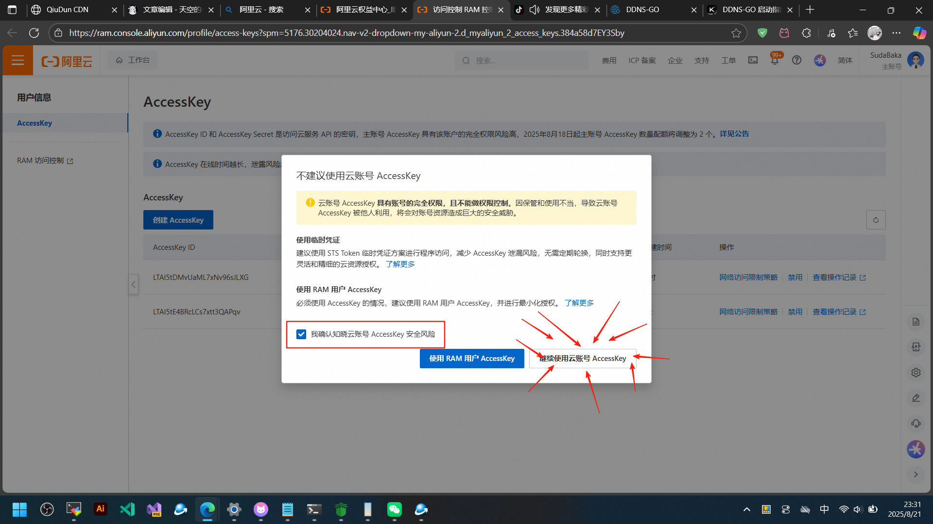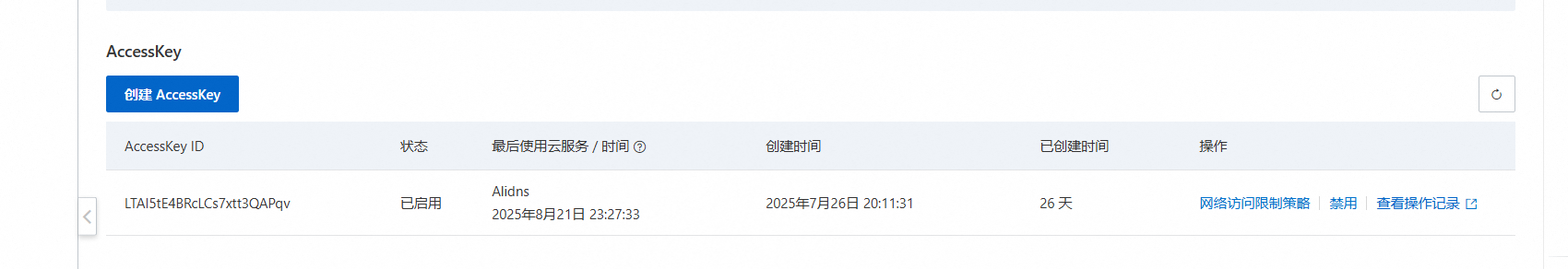 第二步:添加APIkey(我以阿里云为例 其他平台大同小异 宝塔未知)