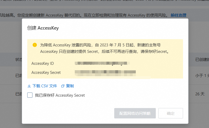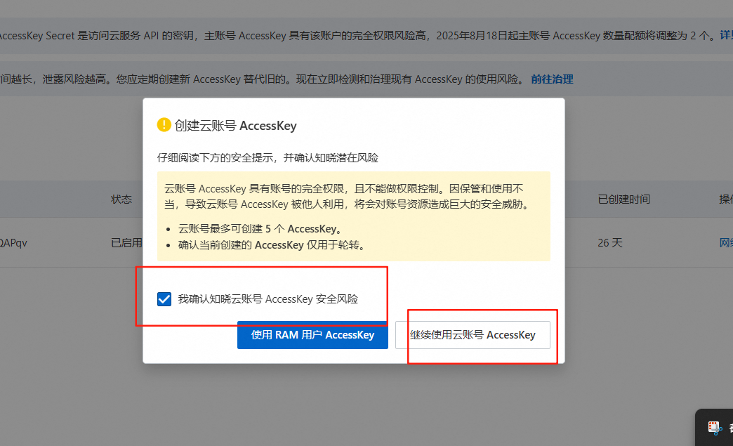 确认使用云账号(因为用RAM有可能没法调用)