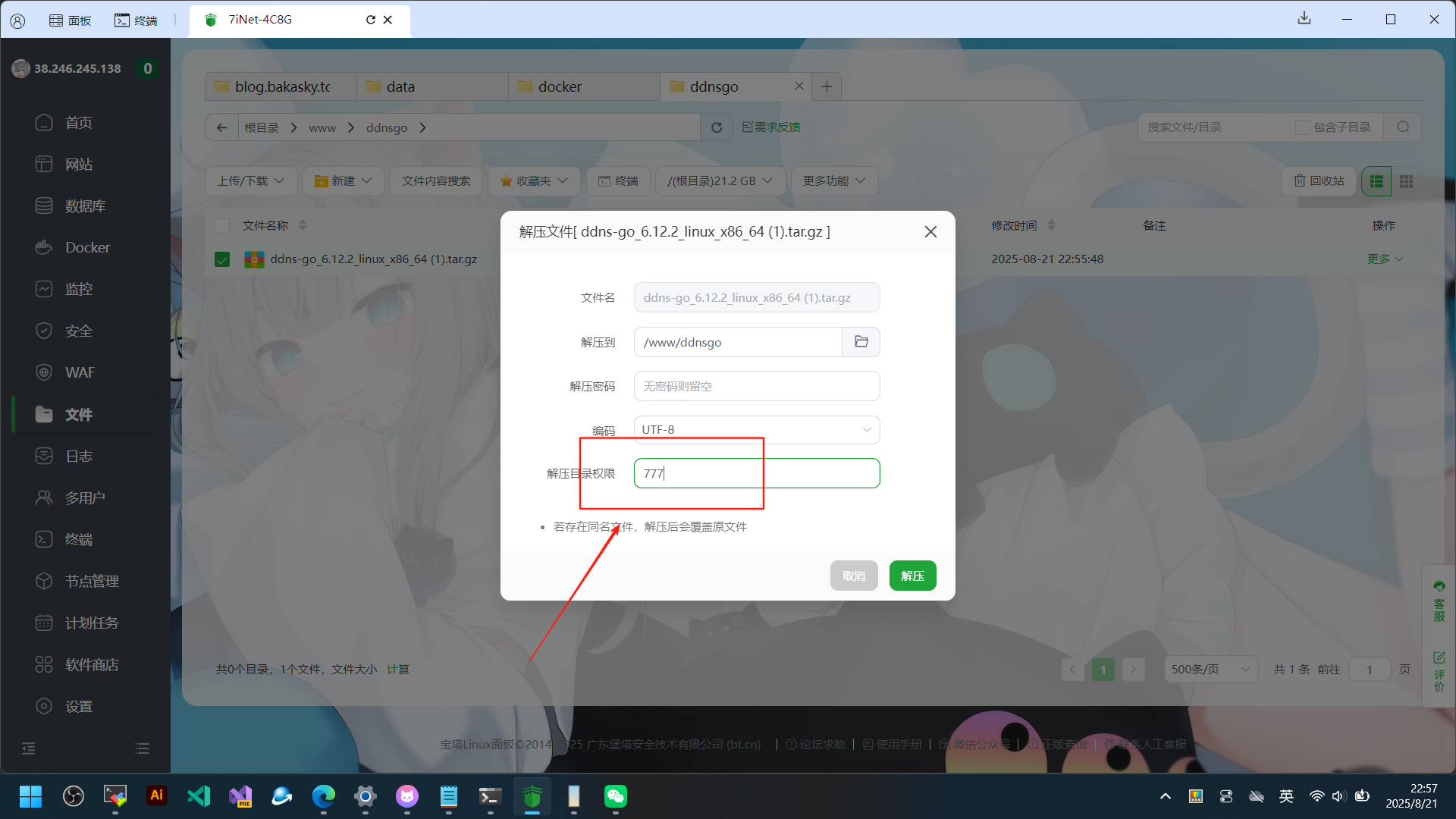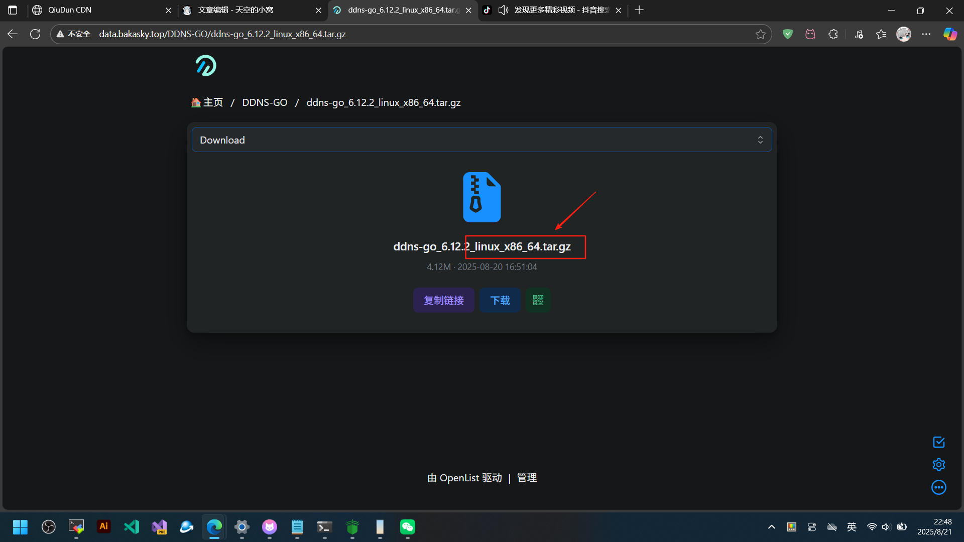 在笨蛋资源站下载对应你服务器的版本 我这里以linux x86的ddnsgo为例