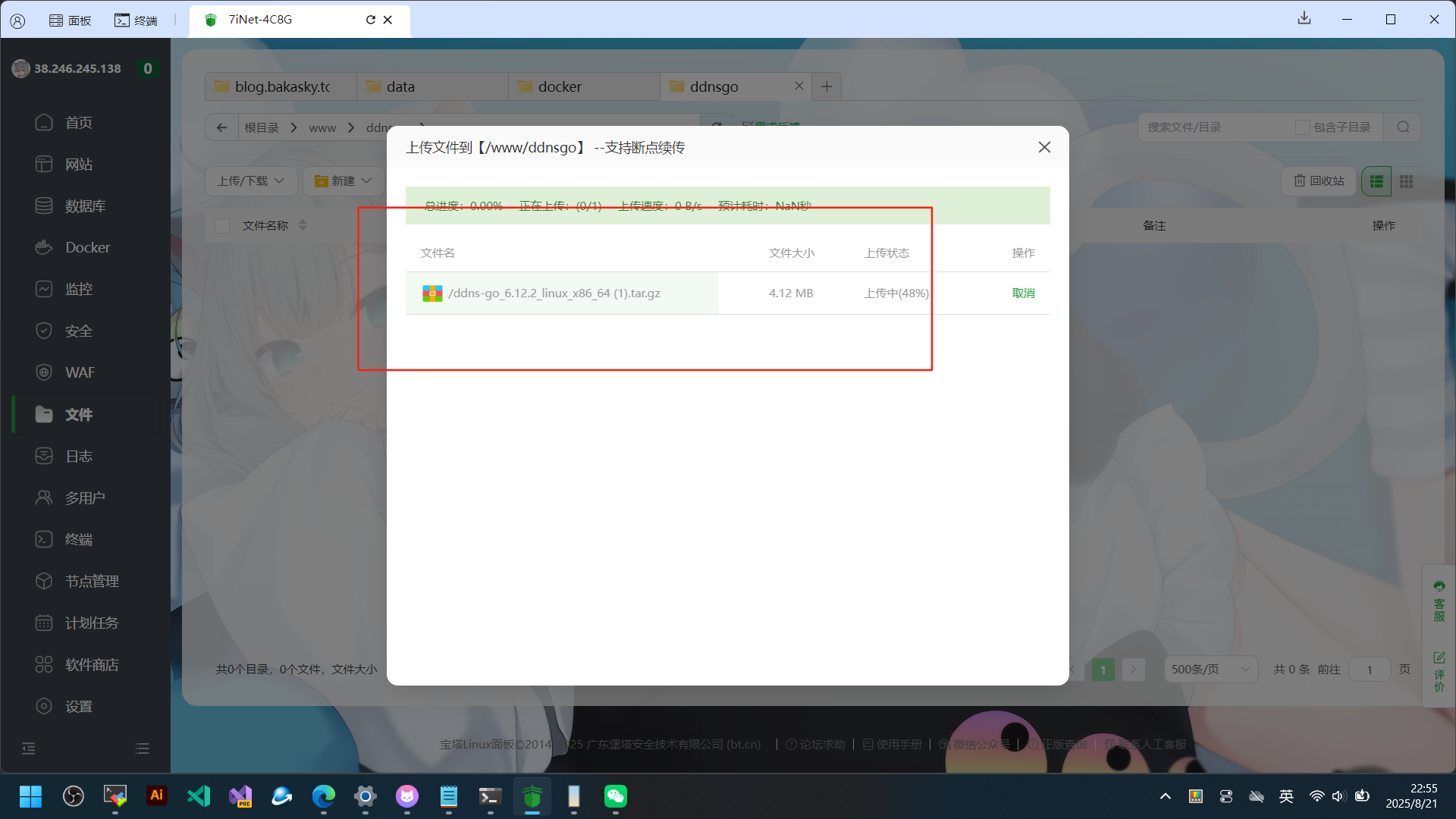 这里我以宝塔11为例 在一个你能记住的地方新建一个文件夹 尽量叫ddnsgo